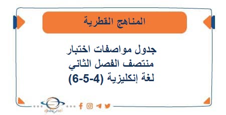 كذلك: جدول مواصفات اختبار اللغة الإنكليزية منتصف الفصل الثاني للمستوى الثاني