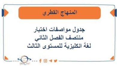 جدول مواصفات اختبار منتصف الفصل الثاني في اللغة الإنكليزية للمستوى الثالث
