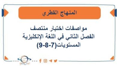 جدول مواصفات اختبار منتصف الفصل الثاني في الإنكليزي للمستويات (7-8-9)