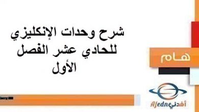 شرح وحدات اللغة الإنجليزية للحادي عشر فصل أول