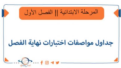 جداول مواصفات اختبار نهاية الفصل للابتدائي
